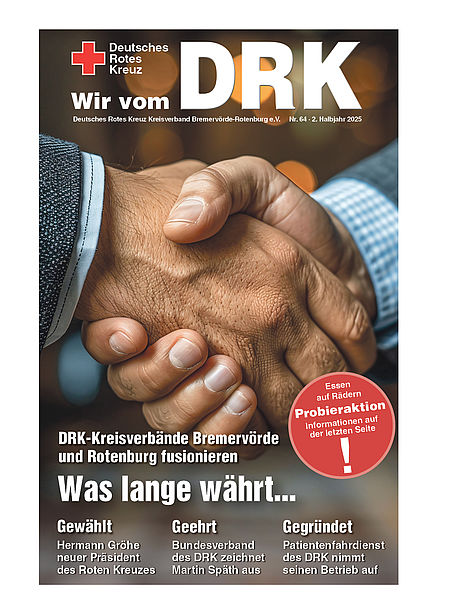 Da ist sie wieder - druckfrisch: die neueste Ausgabe unserer Verbandszeitschrift "Wir vom DRK", die einen Rückblick auf die Aktivitäten des DRK-Kreisverbandes Bremervörde-Rotenburg e. V. sowie seiner Ortsvereine und Gemeinschaften von Juli bis einschließlich Dezember 2025 bietet, arbeitet aber auch überregionale und über die Grenzen der Bundesrepublik Deutschland hinausgehende Rotkreuz-Themen auf. Hier besteht die Möglichkeit, die Zeitschrift in der Digital-Ausgabe zu lesen.
