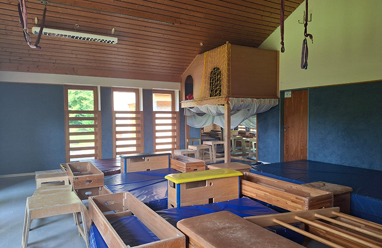 An drei Tagen in der Woche gestalten wir mit den Kindern besondere Bewegungsstunden. Situationen beziehungsweise Themen aus den Gruppen (beispielsweise Verkehr, Fahrzeuge, Farbspiele, Begrenzungen, …) werden hier gezielt in Bewegungsgeschichten umgesetzt. An zwei Tagen in der Woche wird der Bewegungsraum als Bewegungslandschaft oder als Bewegungsbaustelle im Freispiel von den Kindern genutzt.